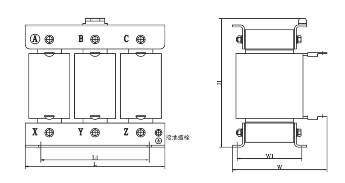結(jié)構(gòu)簡單;結(jié)構(gòu)設(shè)計合理,電抗器體積小,獨特的散熱通道設(shè)計,底腳安裝孔通用性強,可兩側(cè)出線,可單側(cè)出線,便于柜內(nèi)安裝。