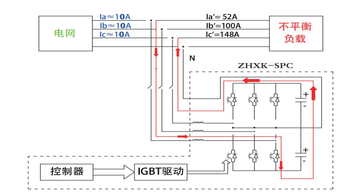 ZHXK-SPC系列三相不平衡自動(dòng)調(diào)節(jié)裝置應(yīng)用于0.4KV低壓電力系統(tǒng)中,是一種用于治理配網(wǎng)三相不平衡、快速補(bǔ)償無(wú)功功率和諧波,實(shí)時(shí)穩(wěn)定系統(tǒng)電壓,它能夠根據(jù)配網(wǎng)用戶由于不同時(shí)間段或不同負(fù)荷導(dǎo)致的配網(wǎng)三相不平衡電流,利用先進(jìn)控制算法分離出不平衡電流的正負(fù)零序及無(wú)功,通過(guò)觸發(fā)功率器件,使逆變器發(fā)出與之相反的抵消電流,達(dá)到消除不平衡及補(bǔ)償無(wú)功的作用,優(yōu)化電能質(zhì)量、實(shí)現(xiàn)節(jié)能減排目的。