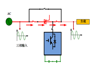故障或維護(hù)的情況下,負(fù)載電流將自動轉(zhuǎn)移到故障安全旁路。即電流將通過反并聯(lián)晶閘管的接觸器或旁路開關(guān),直接向負(fù)載供電