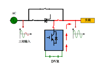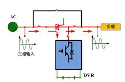 當(dāng)電網(wǎng)出現(xiàn)擾動瞬間,反并聯(lián)晶閘管快速關(guān)斷,負(fù)載與電網(wǎng)隔離,由逆變器向負(fù)載供電